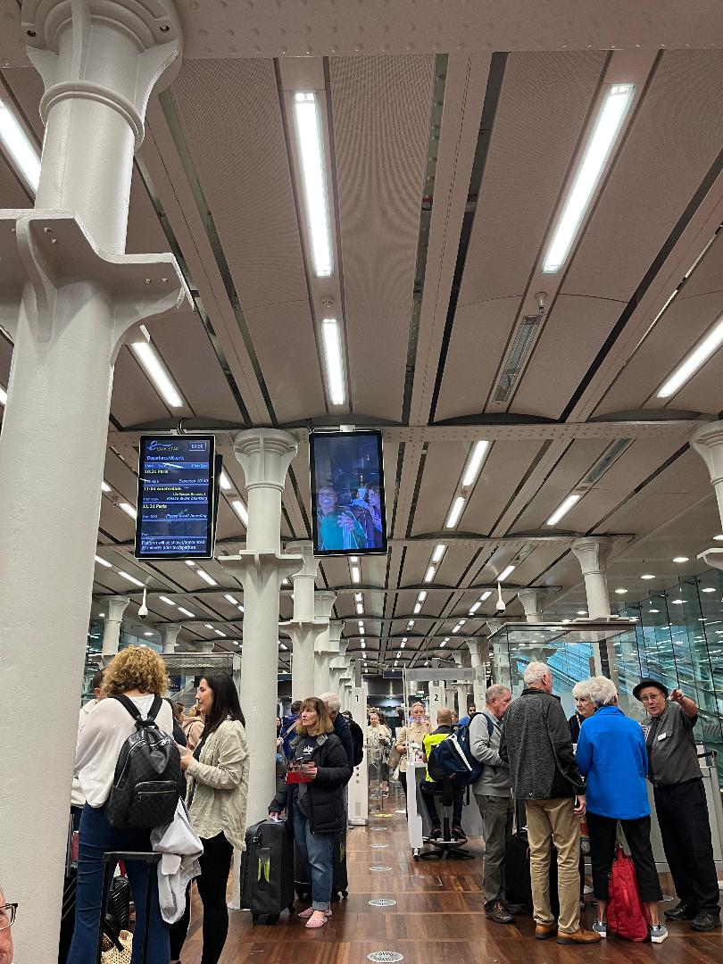 Our London hotel arranged for a transportation service to pick us up and take us to St. Pancras International Train Station at 7:00 a.m. It is a huge station, but the driver took us to the side entrance closest to Eurostar which made it much easier for us. The station was bustling with travelers. We got a scone and yogurt parfait at a restaurant inside St. Pancras and waited until the designated time when we could enter the Eurostar line to go inside. Eurostar is actually it's own station within St. Pancras.